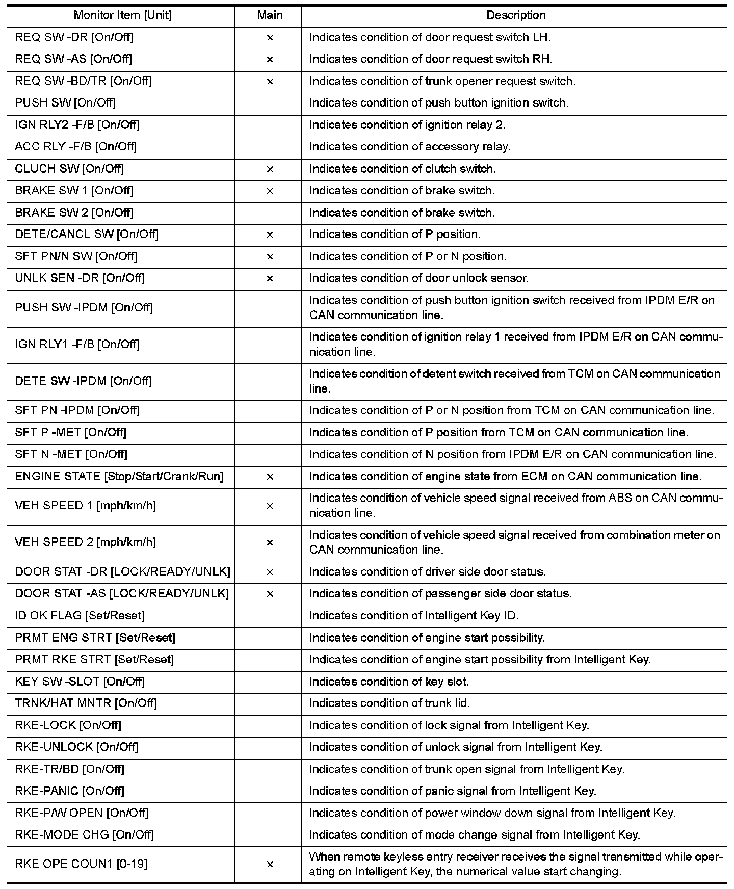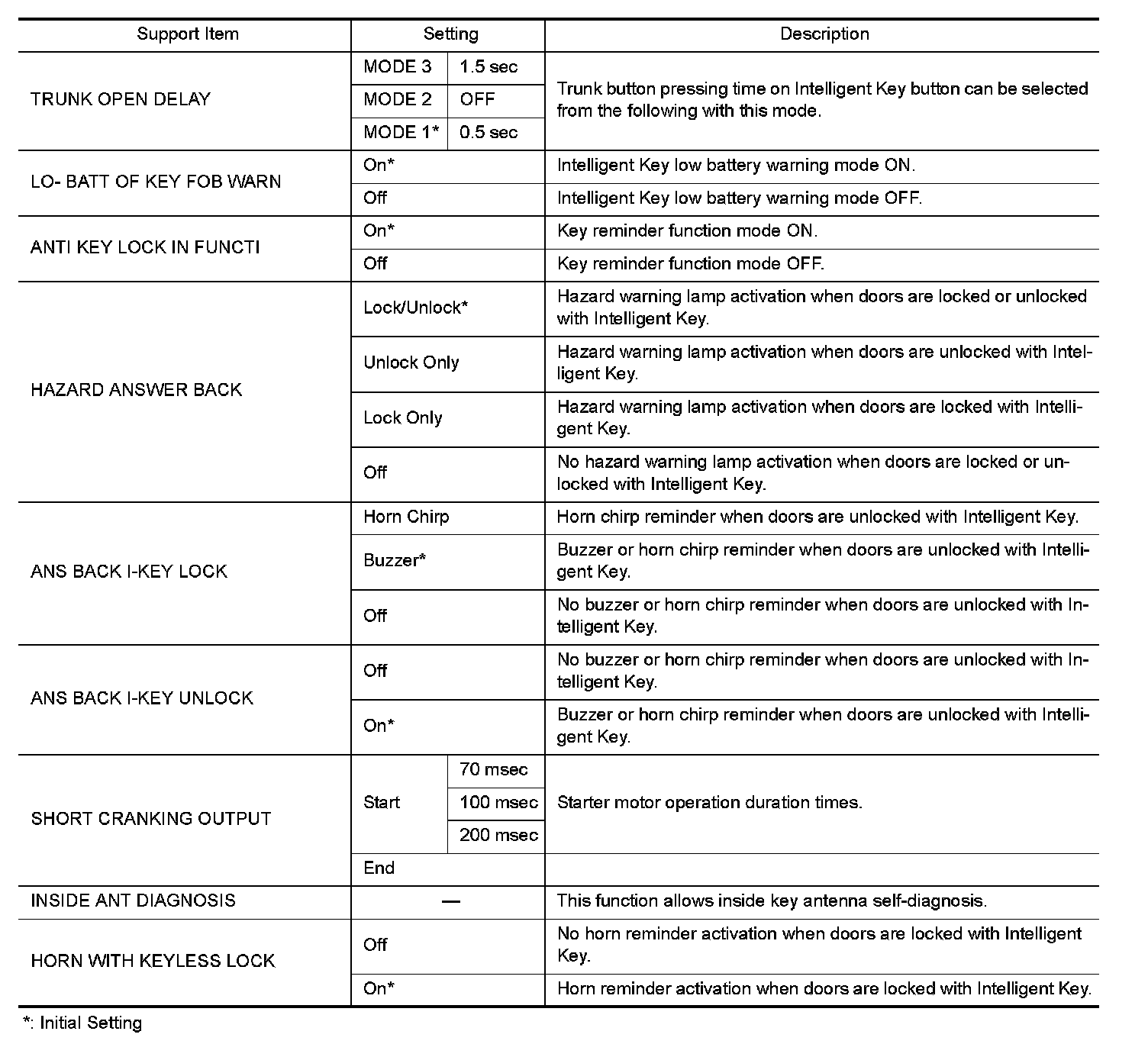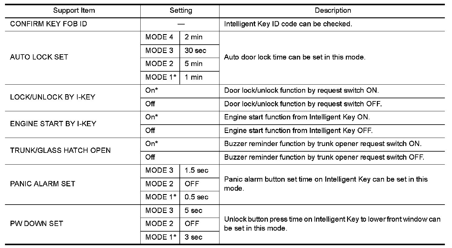 INTELLIGENT KEY : CONSULT Function (