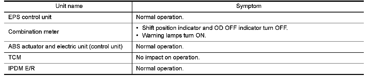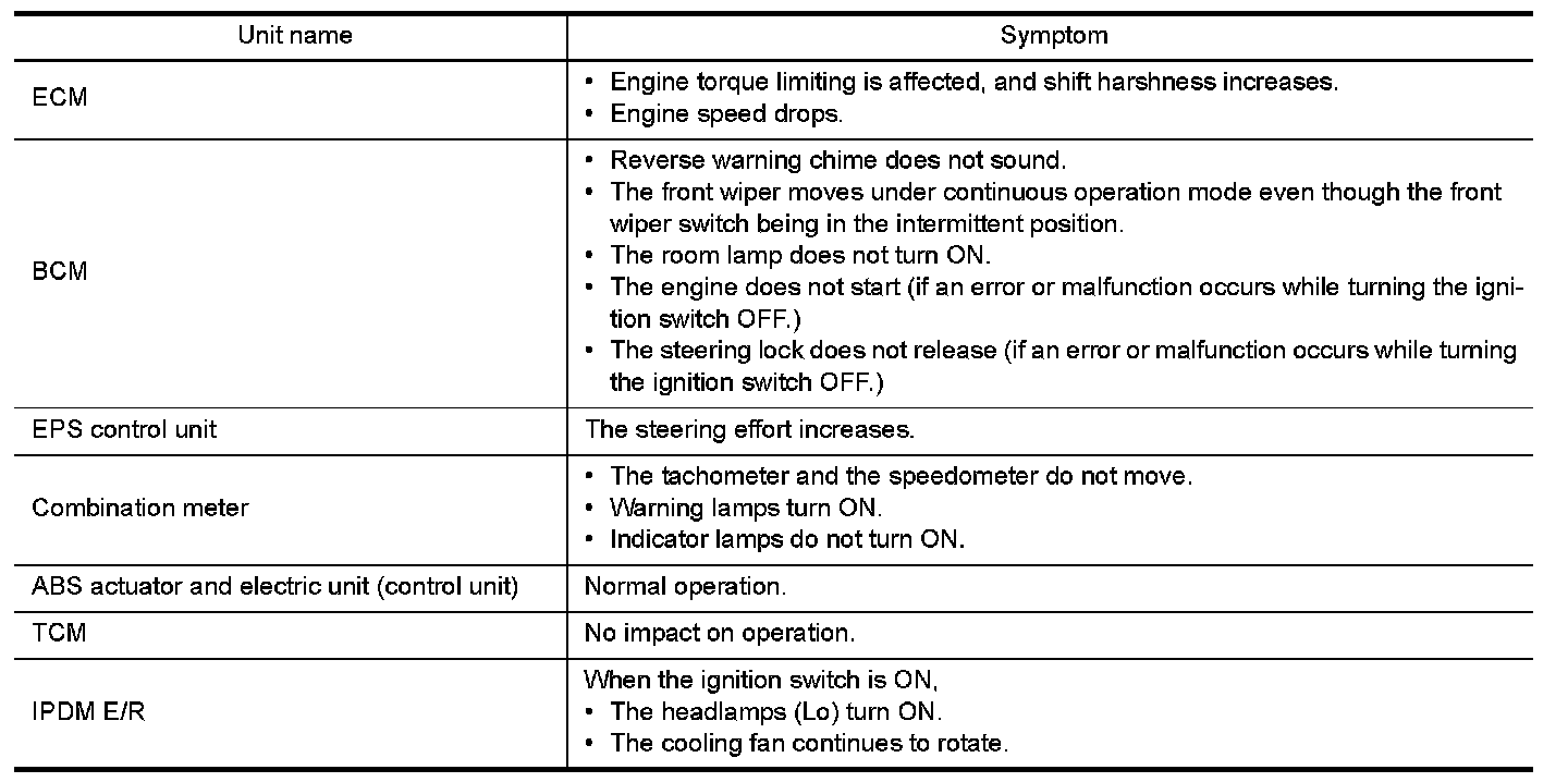 - Each vehicle differs in symptom of each unit under fail-safe mode and CAN communication line wiring.