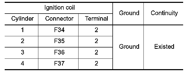 2.Check the continuity between ECM harness connector and ignition coil harness connector.