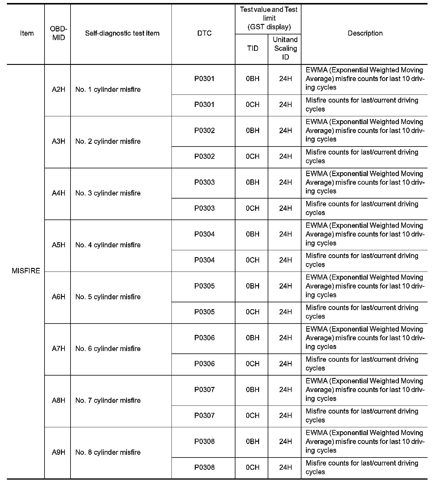 The following is the information specified in Service $06 of SAE J1979/ISO 15031-5.