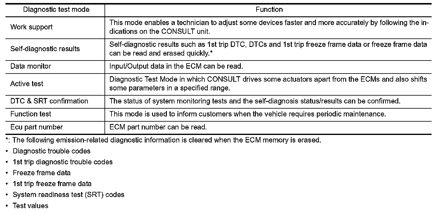 Permanent DTCs stored in ECM memory are displayed on the CONSULT screen to show if a driving pattern required for erasing permanent DTCs is complete (CMPLT) or incomplete (INCMP).