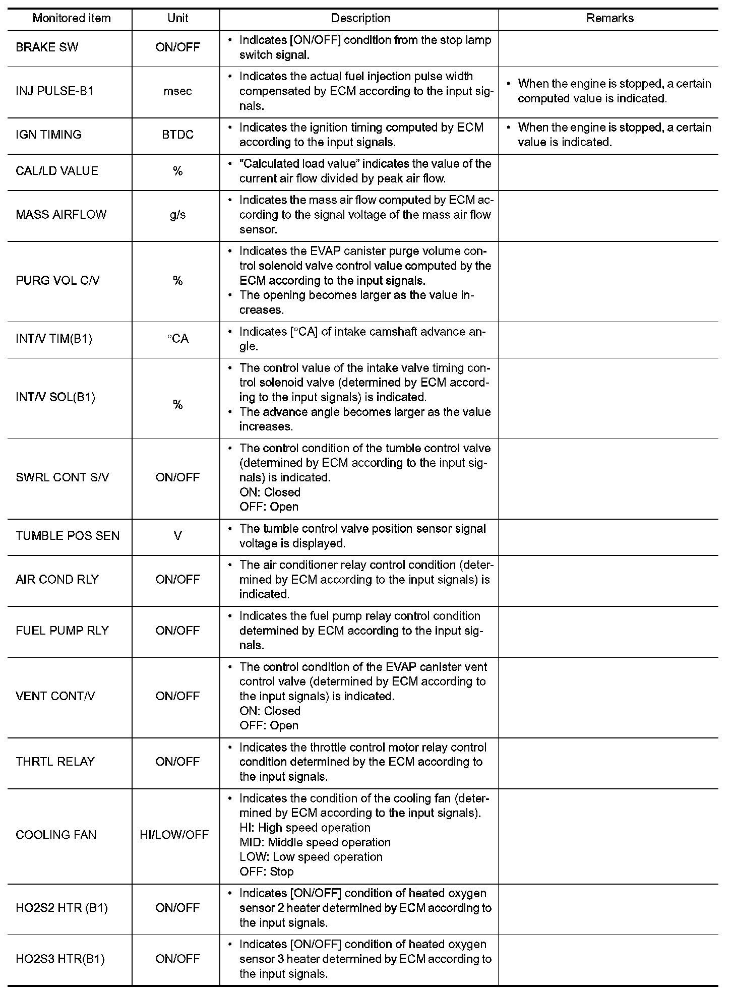 - If "TIME" is neither "0" nor "1t", the DTC occurred in the past and ECM shows the number of times the vehicle has been driven since the last detection of the DTC.