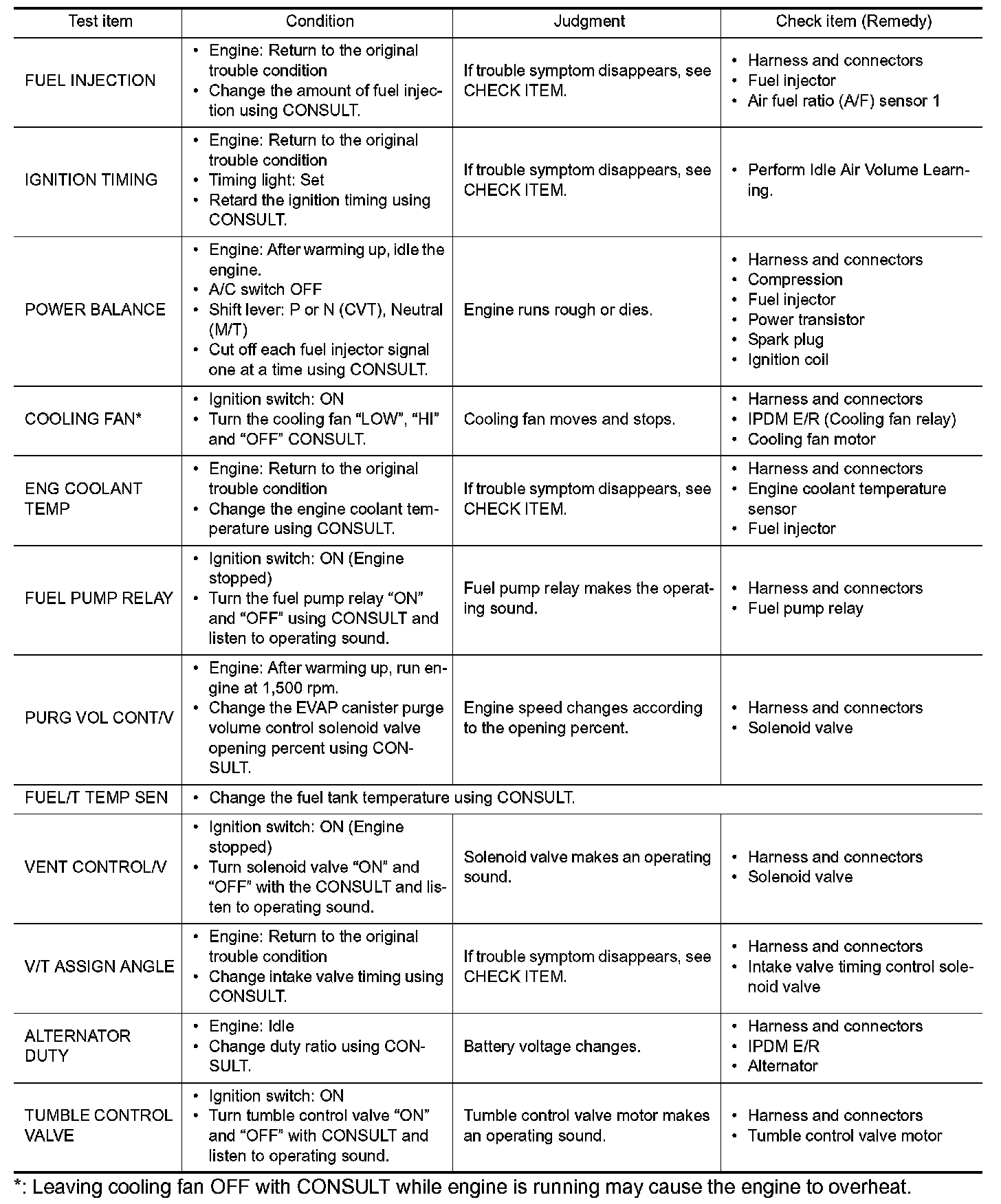 *: Leaving cooling fan OFF with CONSULT while engine is running may cause the engine to overheat.