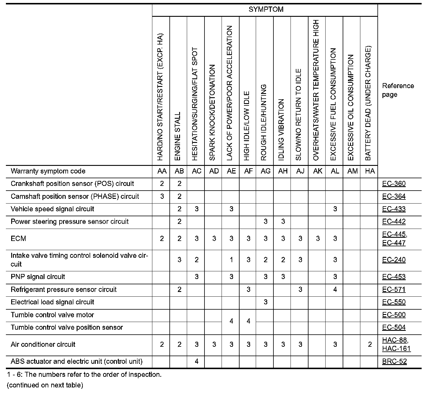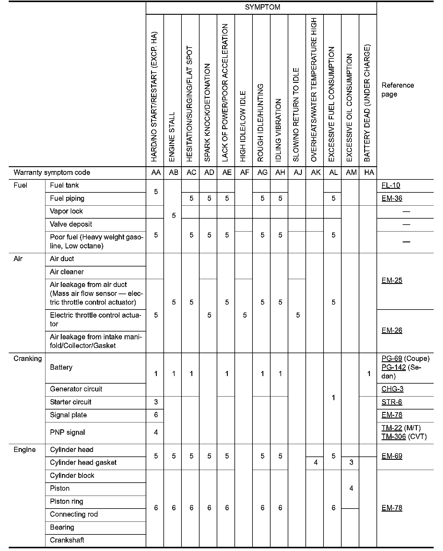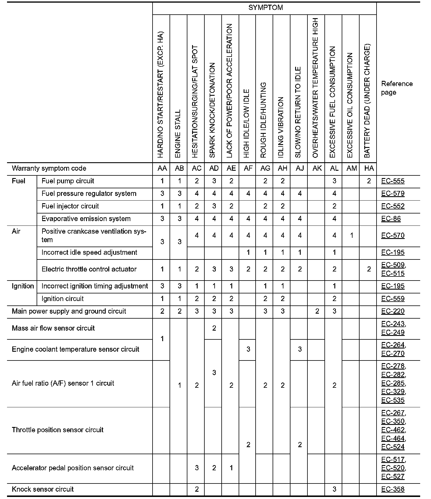 ENGINE CONTROL SYSTEM SYMPTOMS