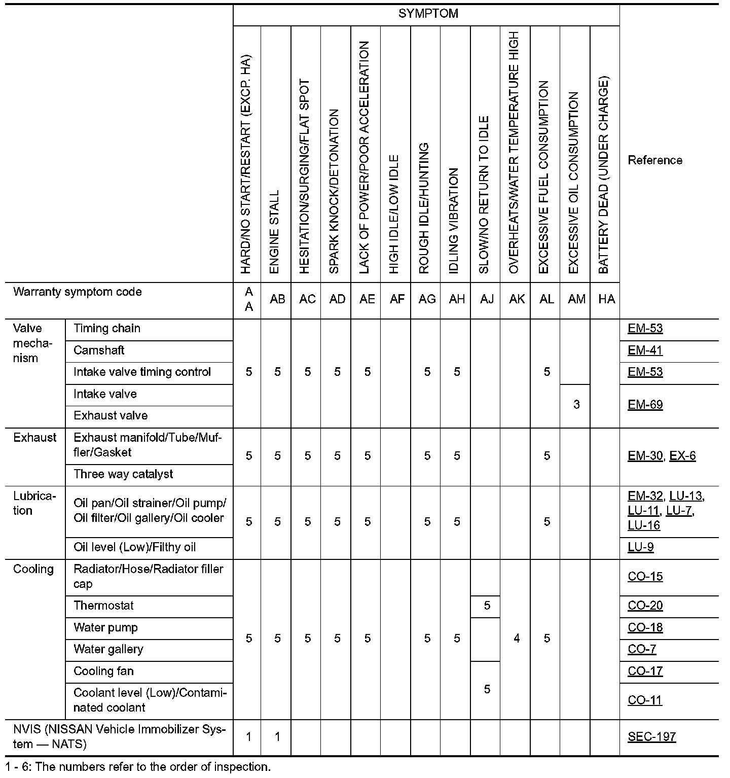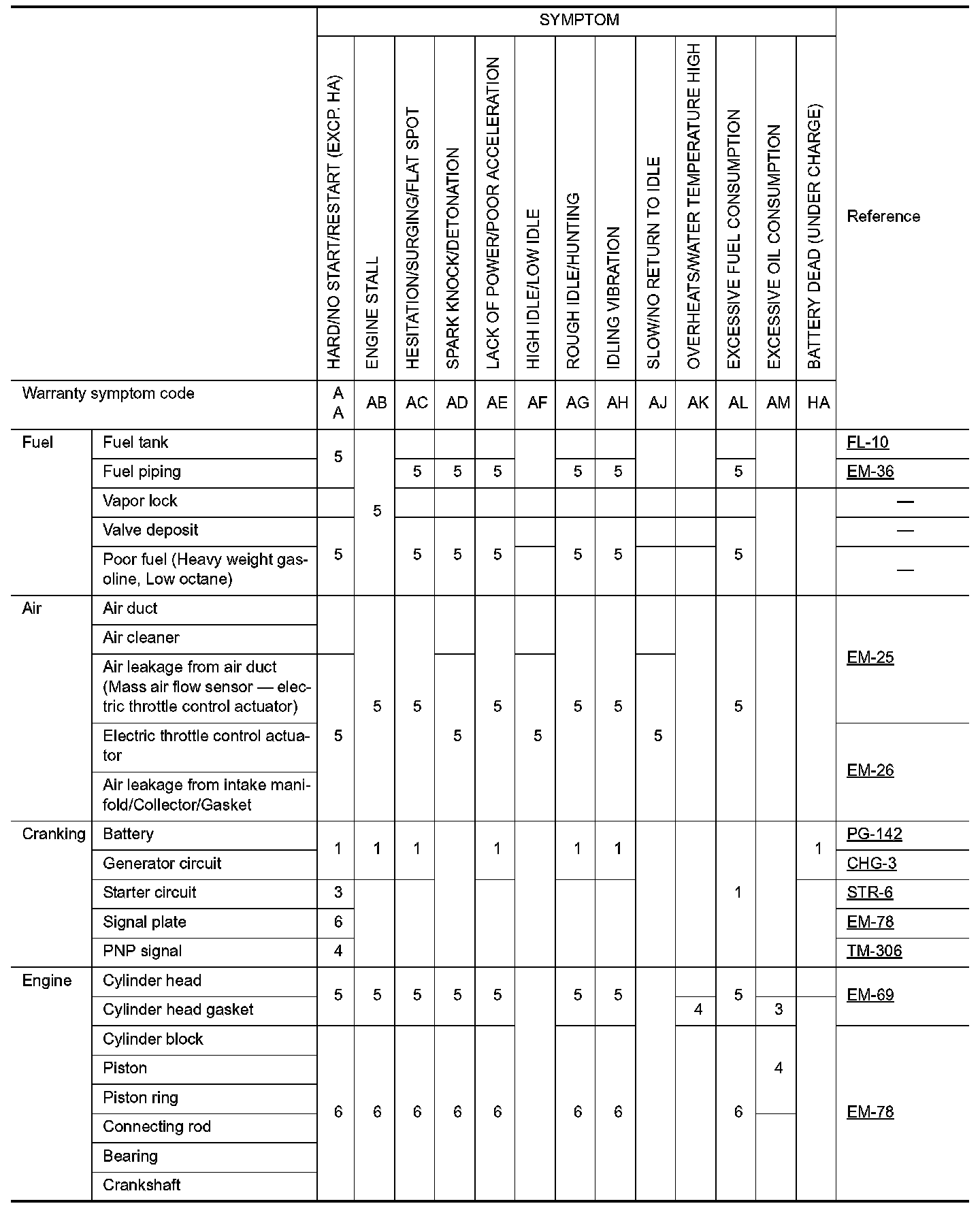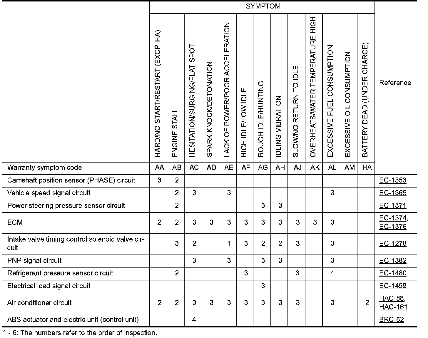 ENGINE CONTROL SYSTEM SYMPTOMS