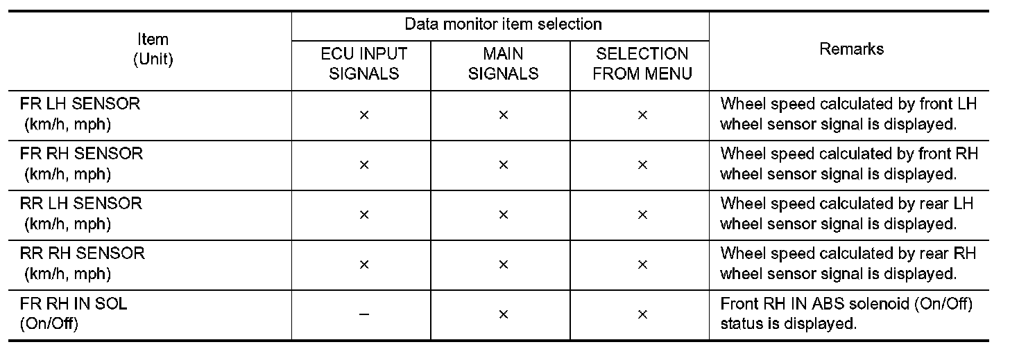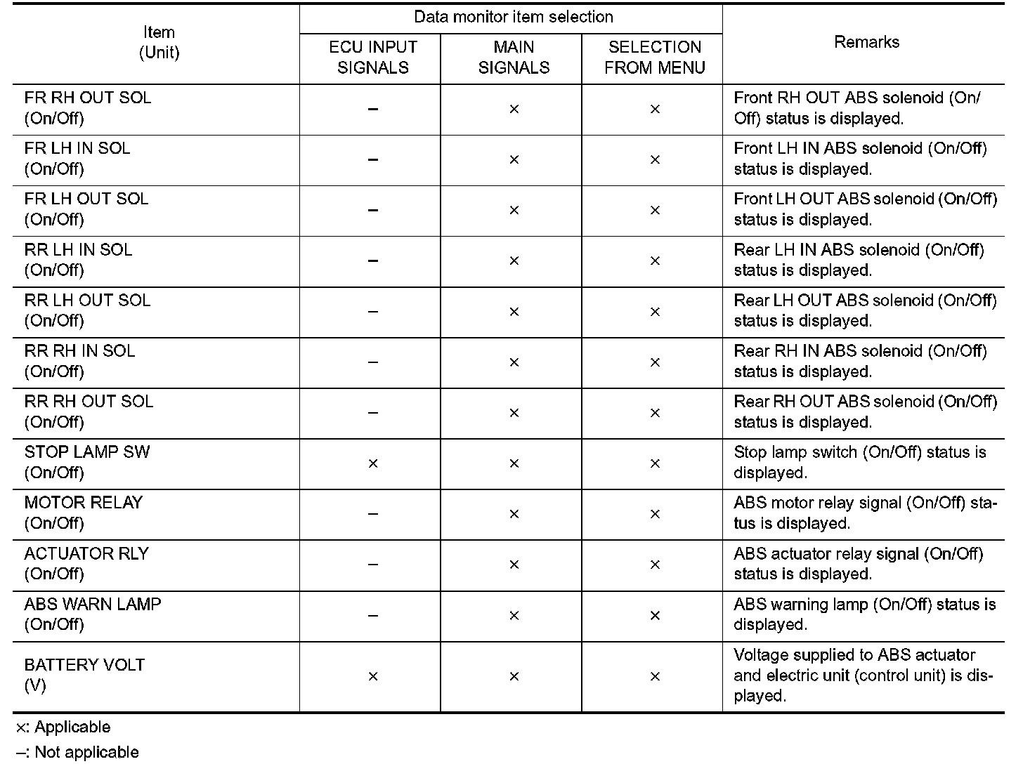 - When performing an active test of the ABS function, select the "MAIN SIGNALS" for each test item.