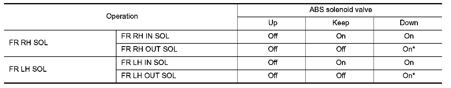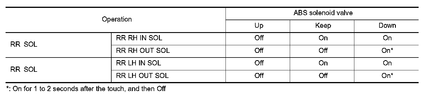 - Touch "Up", "Keep", and "Down" on the display screen and confirm that solenoid valves operate as shown in the table below.