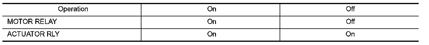 - Touch "On" and "Off" on screen. Make sure motor relay and actuator relay operate as shown in table below.