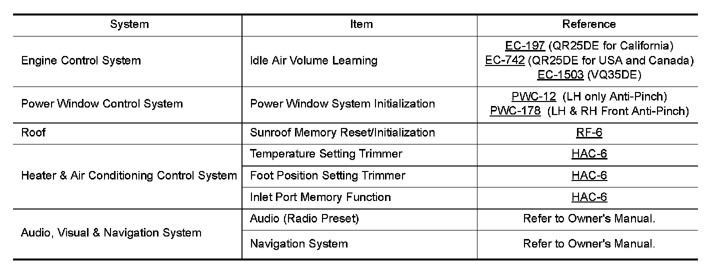 ADDITIONAL SERVICE WHEN REMOVING BATTERY NEGATIVE TERMINAL : Special Repair Requirement