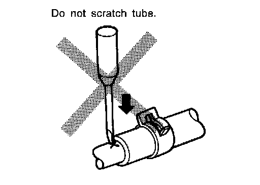 - To prevent damage to rubber hose, do not pry off rubber hose with tapered tool or screwdriver.
