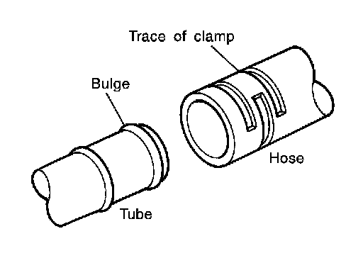 - If old rubber hose is re-used, install hose clamp in its original position (at the indentation where the old clamp was). If there is a trace of tube bulging left on the old rubber hose, align rubber hose at that position.