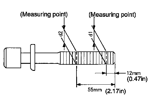 Cylinder head bolts are tightened by plastic zone tightening method. Whenever the size difference between d1 and d2 exceeds the limit, replace the bolts with new ones.