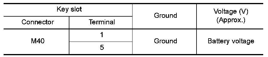 Check continuity between key slot connector and ground.