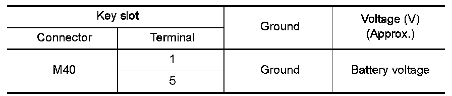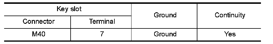 Check continuity between key slot connector and ground.