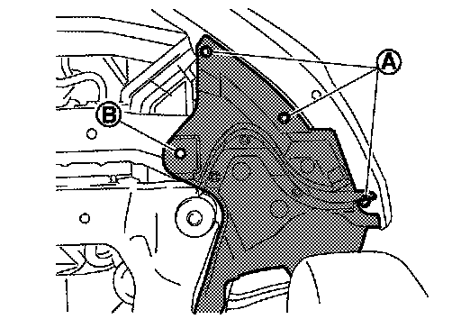 5.Remove fender protector mounting bolts (A) and clip (B).