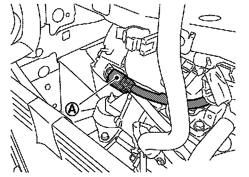 5.Remove the mounting bolts (A), then remove the compressor stay (1).