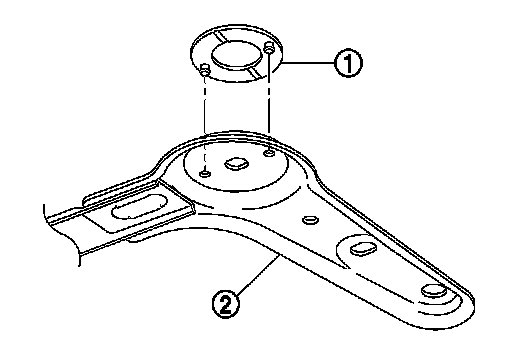 - To install rebound stopper (1), insert it with the protrusion aligned with the hole of member stay (2).