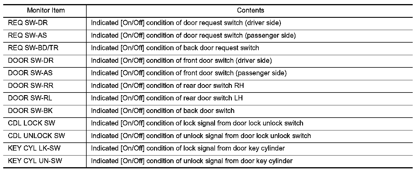 DOOR LOCK : CONSULT Function (