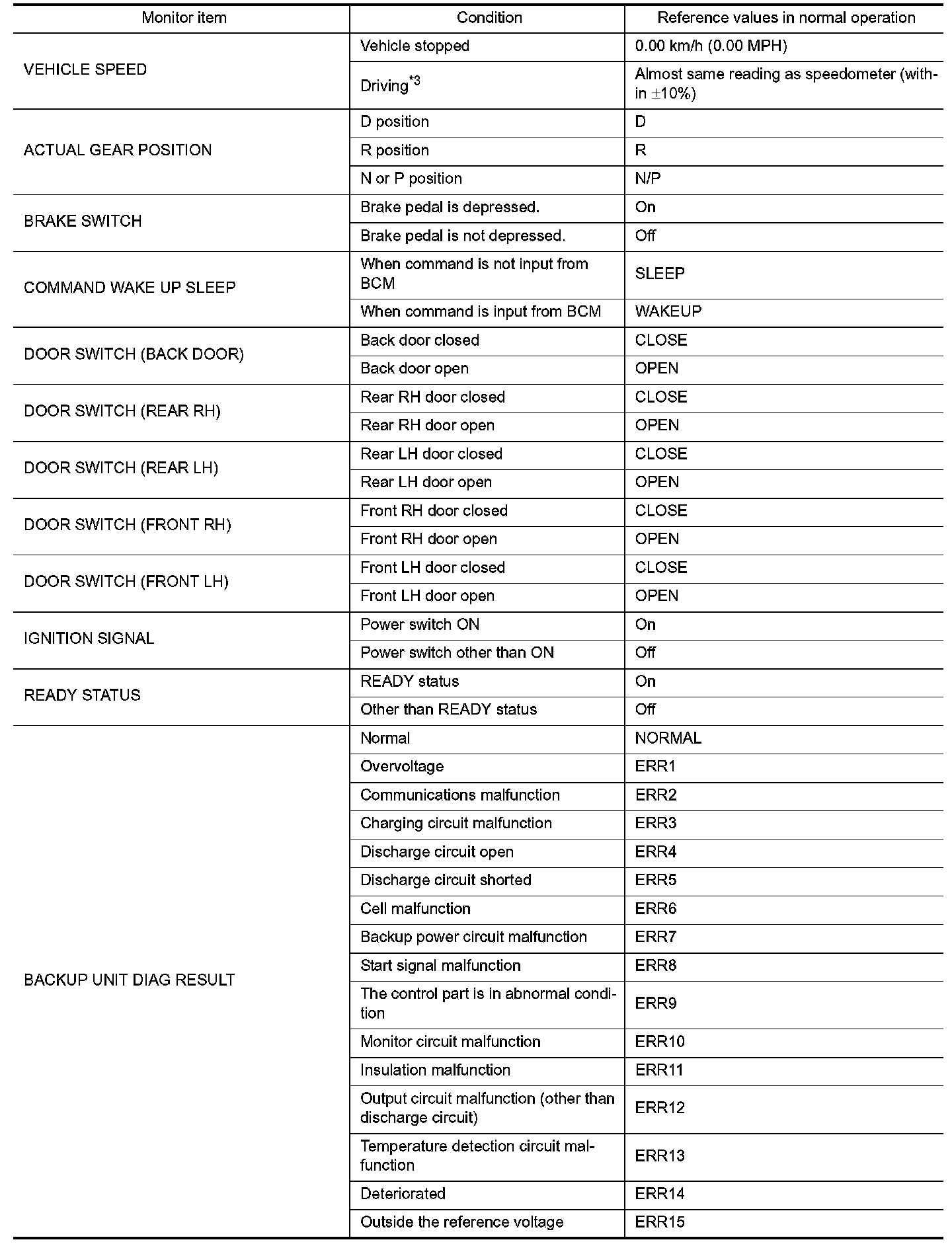 CONSULT DATA MONITOR STANDARD VALUE