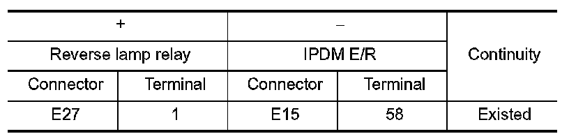 3.Check the continuity between reverse lamp relay terminals under the following conditions.