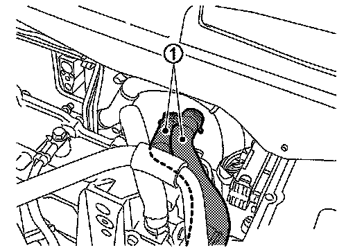 5.Remove fixing clamps, and then disconnect heater hoses (1).