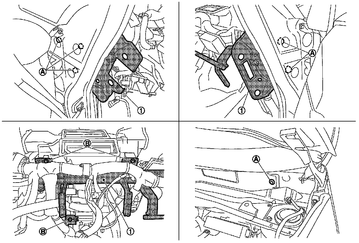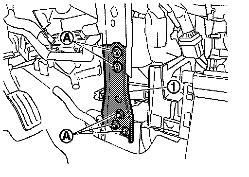 9.Remove mounting nuts (A), and then remove instrument stay (1).
