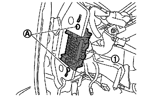 10.Remove fixing screws (A), and then remove fuse box (J/B) (1).