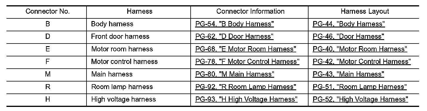 Connector information and harness layout are described in "POWER SUPPLY, GROUND & CIRCUIT ELEMENTS" Section.