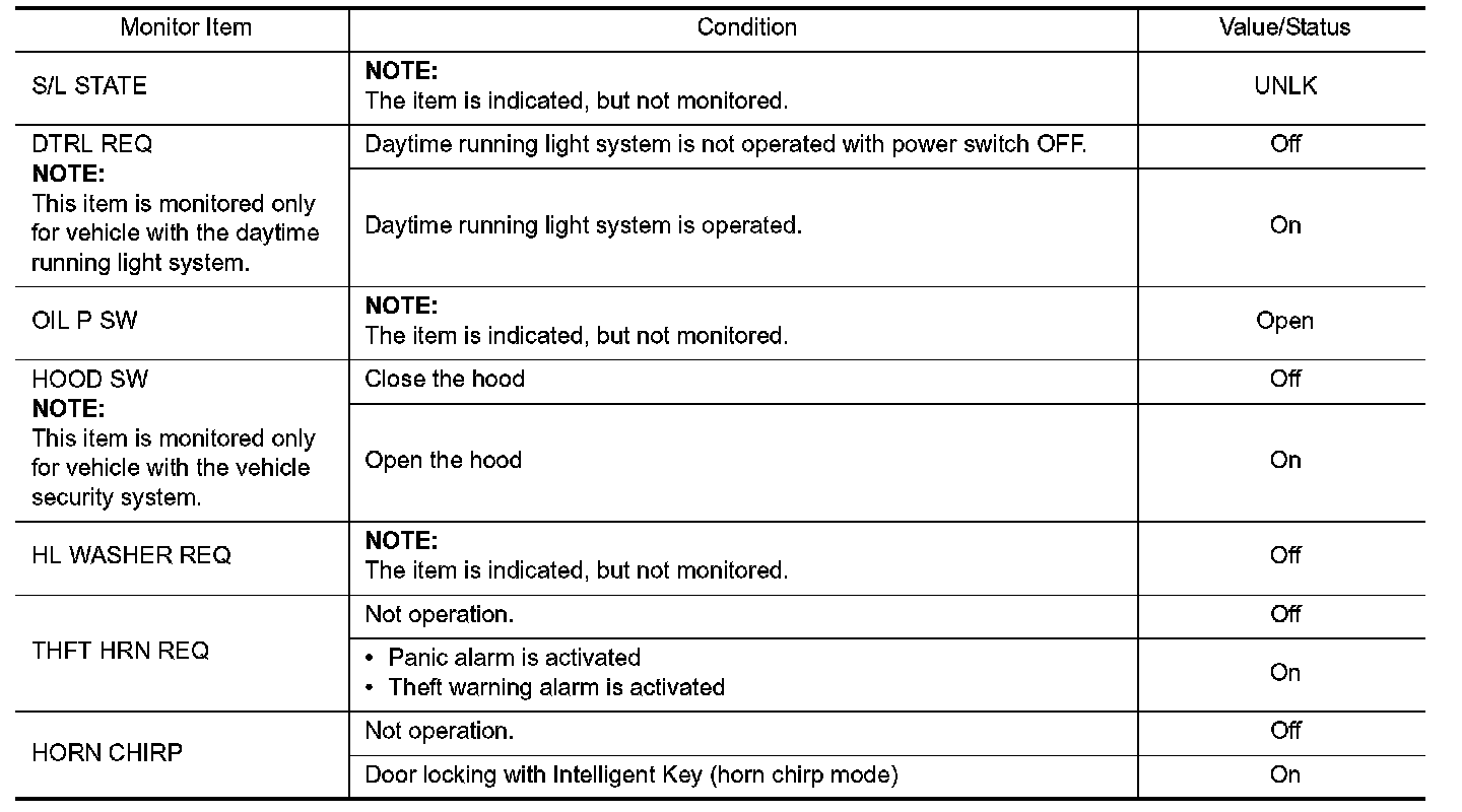 Pinout Values and Diagnostic Parameters