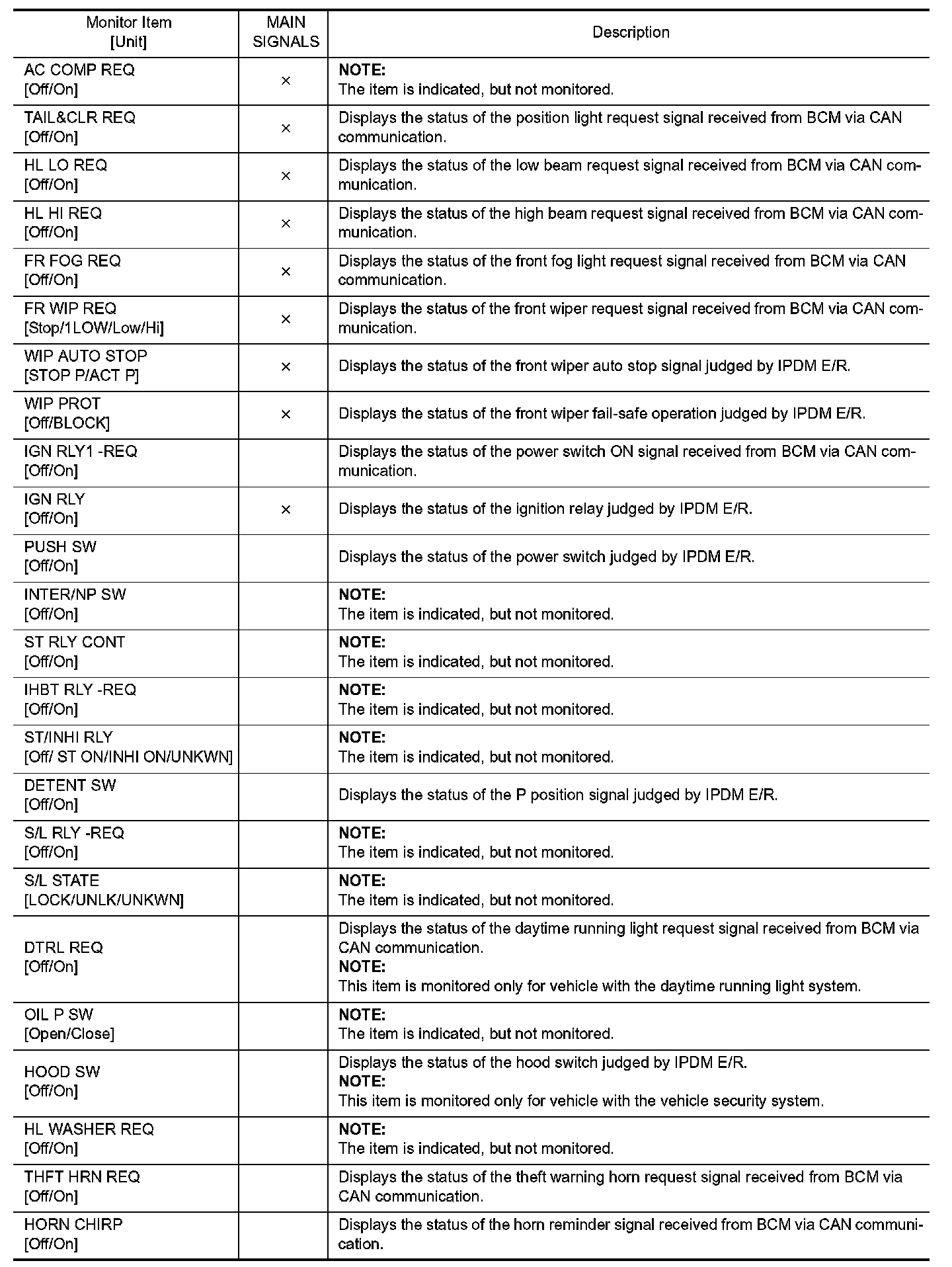 CONSULT performs the following functions via CAN communication with IPDM E/R.