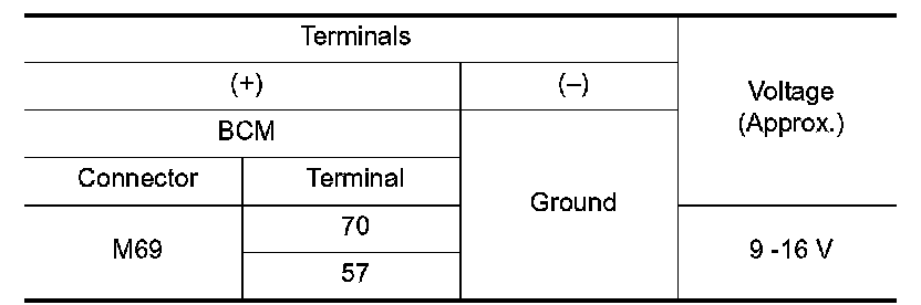 3.Check voltage between BCM harness connector and ground.