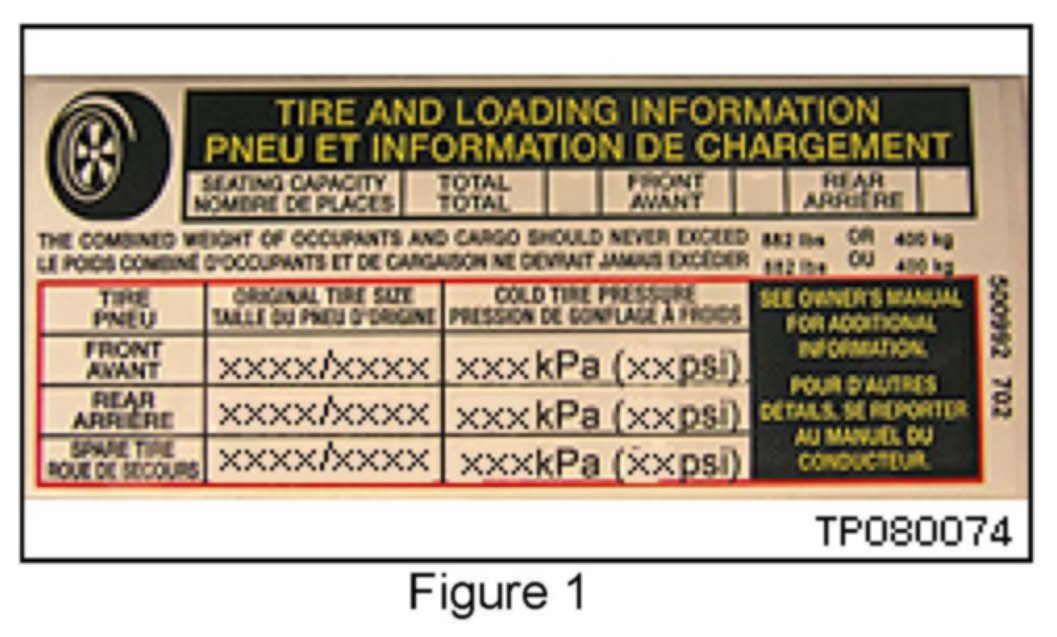 Each vehicle is equipped with a "Tire and Loading Information" placard (see example in Figure 1).