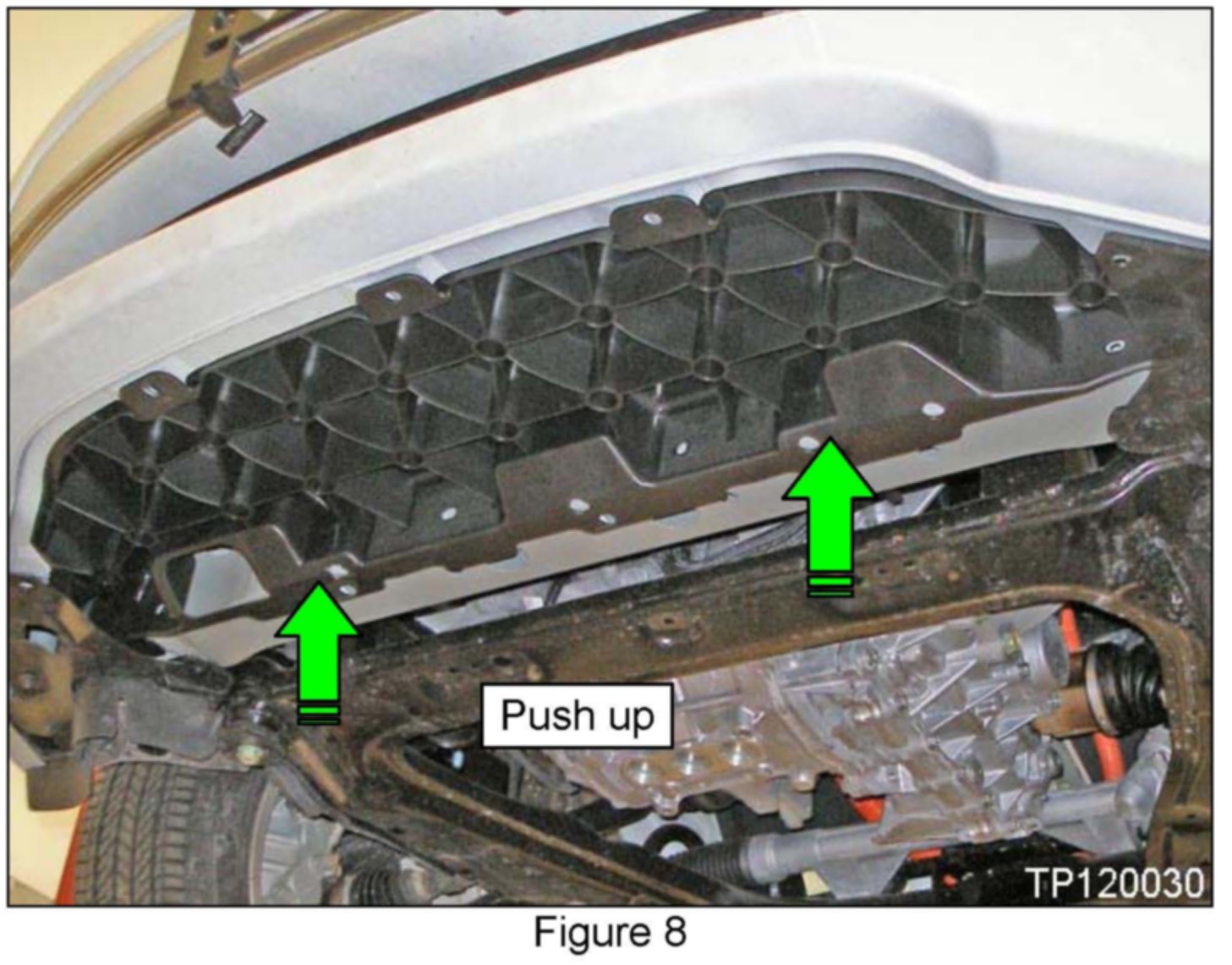 ^ Push up where noted in Figure 8 until the clips snap into place.