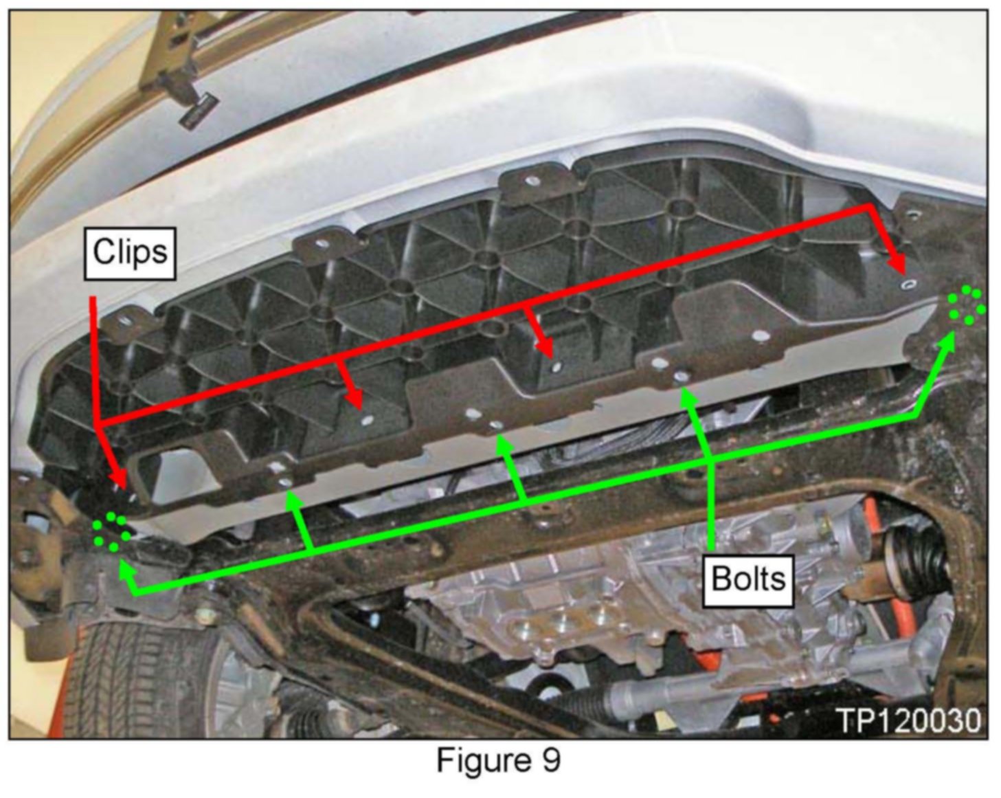 The existing bolts that attach the bumper fascia are not fastened until the front under cover is reinstalled (step 9).