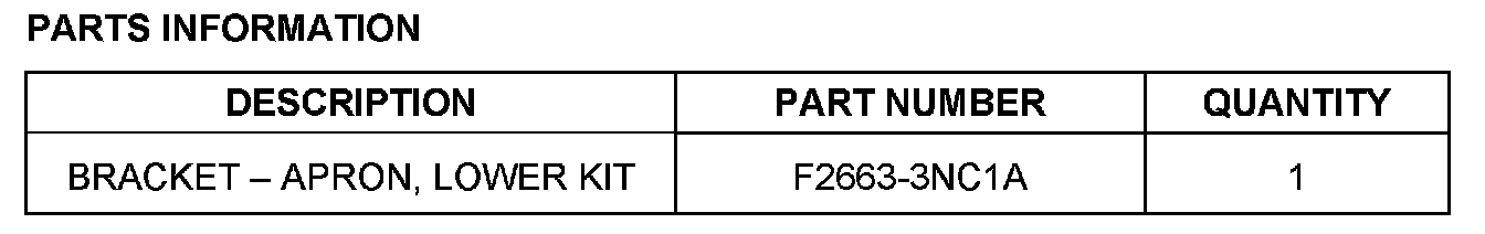 4. Position the ends of the apron lower bracket (or apron, P/N F2663-3NC1A) over each fender protector. See Figure 3.