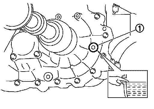 - Remove filler plug (1) and gasket. Then check that oil is filled up from mounting hole for the filler plug.