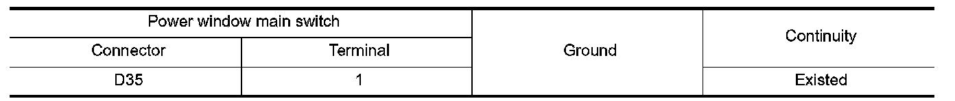 Check continuity between power window main switch harness connector and ground.