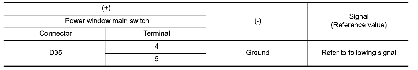 2.Check signal between power window main switch harness connector and ground with oscilloscope.