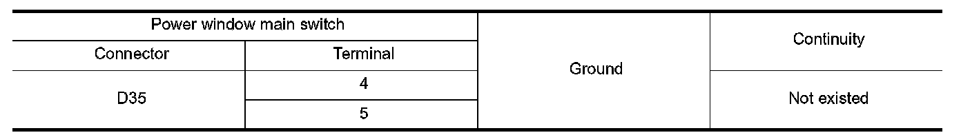 4.Check continuity between power window main switch harness connector and ground.