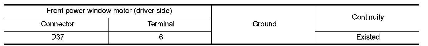 2.Check continuity between front power window motor (driver side) harness connector and ground.