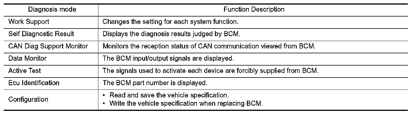 CONSULT performs the following functions via CAN communication with BCM.