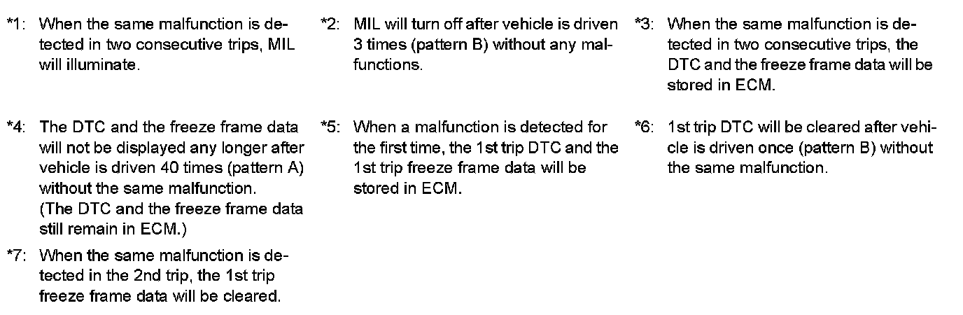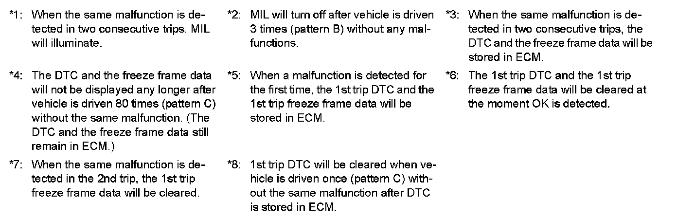 - When the same malfunction is detected in two consecutive trips, the DTC and the freeze frame data are stored in the ECM memory, and the MIL will come on. For details, For California.