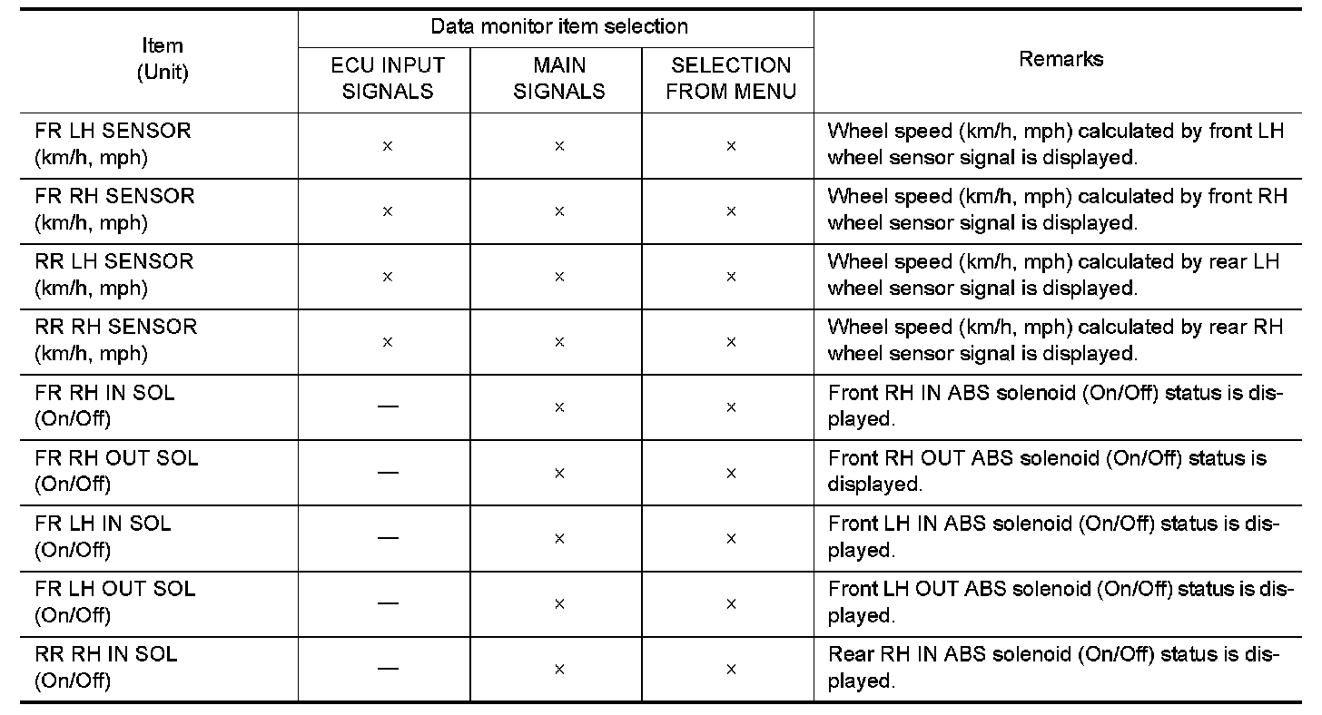 - When performing an active test of the ABS function, select "MAIN SIGNALS" for each test item.