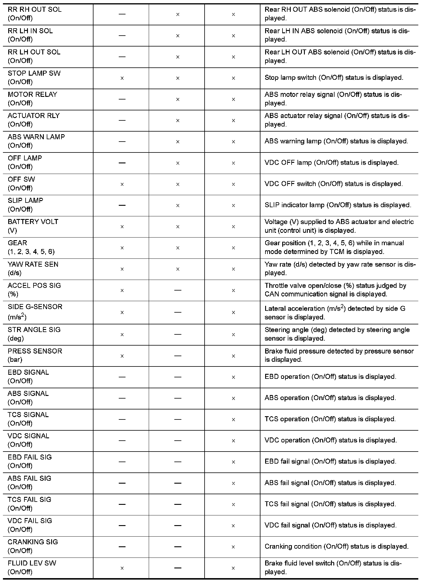 - The active test cannot be performed with the ABS warning lamp, VDC indicator lamp, SLIP indicator lamp or brake warning lamp on.