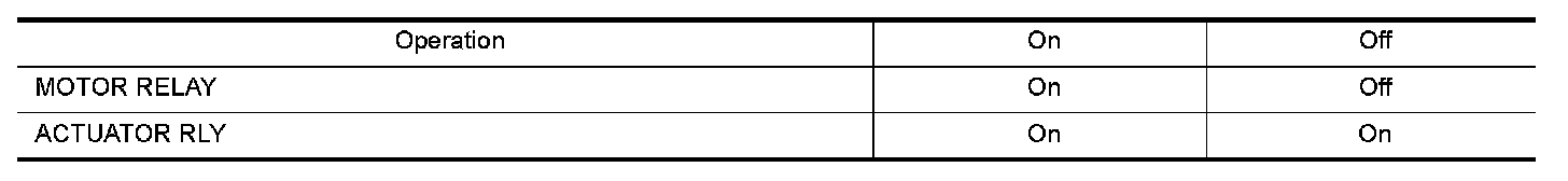 - Touch "On" and "Off" on screen. Make sure motor relay, actuator relay, V/R output and M/R output operate as shown in table below.