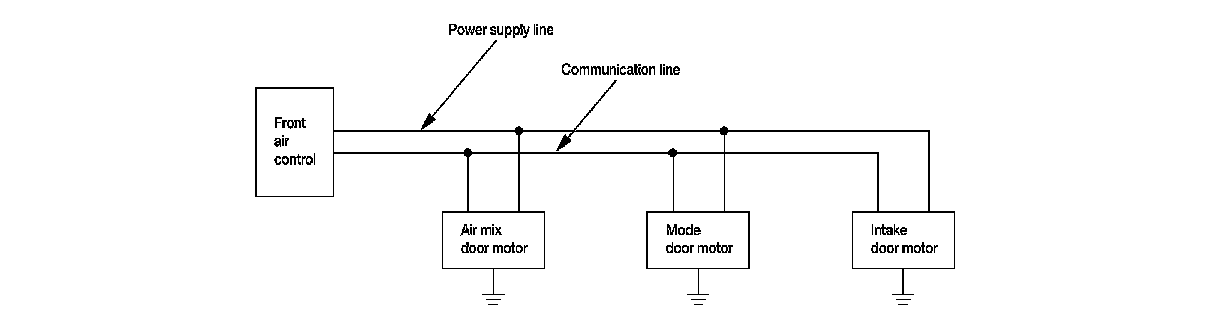 A small network is constructed between the front air control, air mix door motor, intake door motor, and mode door motor. The front air control and motors are connected by data transmission lines and motor power supply lines. The LAN network is built through the ground circuits of the two motors.