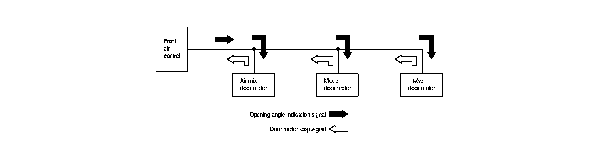 The air mix door motor, mode door motor and intake door motor read their respective signals according to the address signal. Opening angle indication signals received from the front air control and each of the motor position sensors are compared by the LCUs in each motor with the existing decision and opening angles. Subsequently, HOT/COLD, DEFROST/VENT or FRESH/RECIRCULATION operation is selected. The new selection data is returned to the front air control.