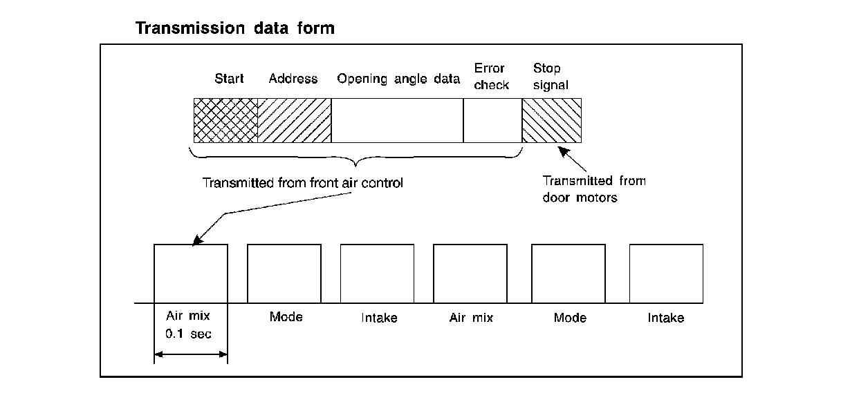 Front air control data is transmitted consecutively to each of the door motors following the form shown in figure below.