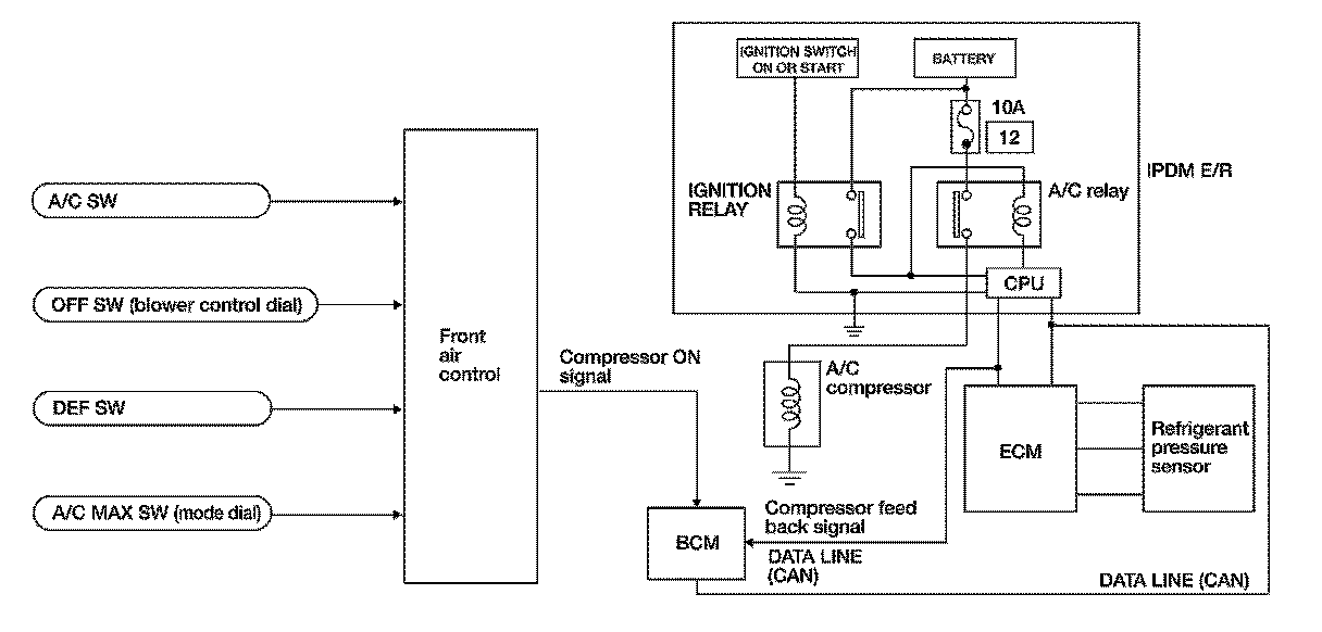 The ECM controls compressor operation using input signals from the throttle position sensor and front air control.
