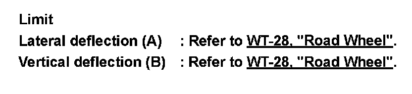 2.Check wheels for deformation, cracks and other damage. If deformed, remove wheel and check wheel runout.